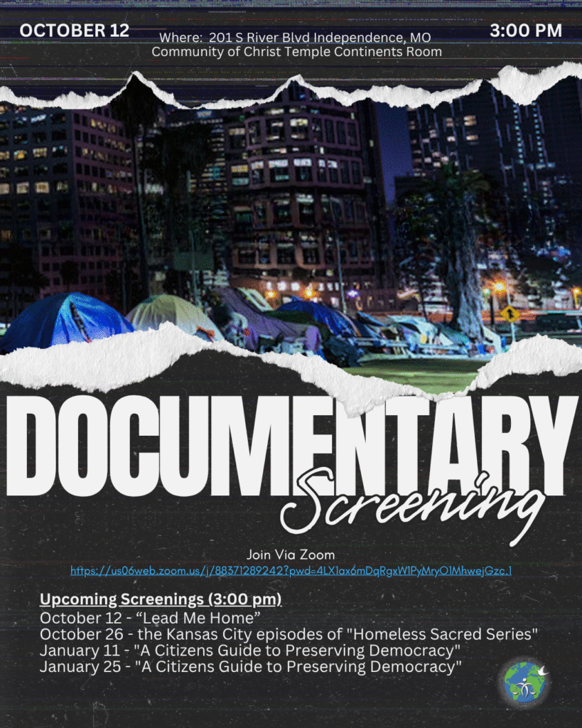 October 26– the Kansas City episodes of “Homeless Sacred Series”